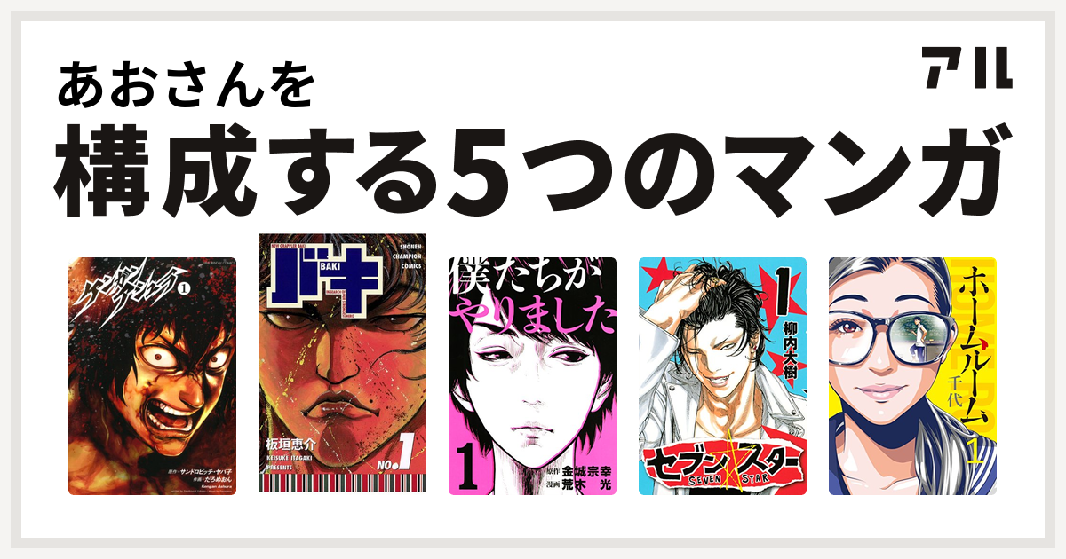 あおさんを構成するマンガはケンガンアシュラ バキ 僕たちがやりました セブン スター ホームルーム 私を構成する5つのマンガ アル
